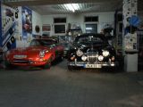 Auto-Salon als Abkömmling des erfolgreichen Rennwagens Jaguar D-Type vorgestellt. Der Sechszylinder-Reihenmotor mit 3781 cm³ und 265 bhp