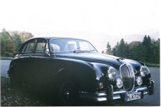 Die Daimler Motor Company wurde von Jaguar im Mai 1960 übernommen. Von Oktober 1962 bis Mitte 1969 wurde daraufhin mit der gleichen Karosserie wie der des Jaguar Mark II der Daimler 250 V8 angeboten, der jedoch den Motor des Daimler SP250 bekam. Quelle: Wikipedia |